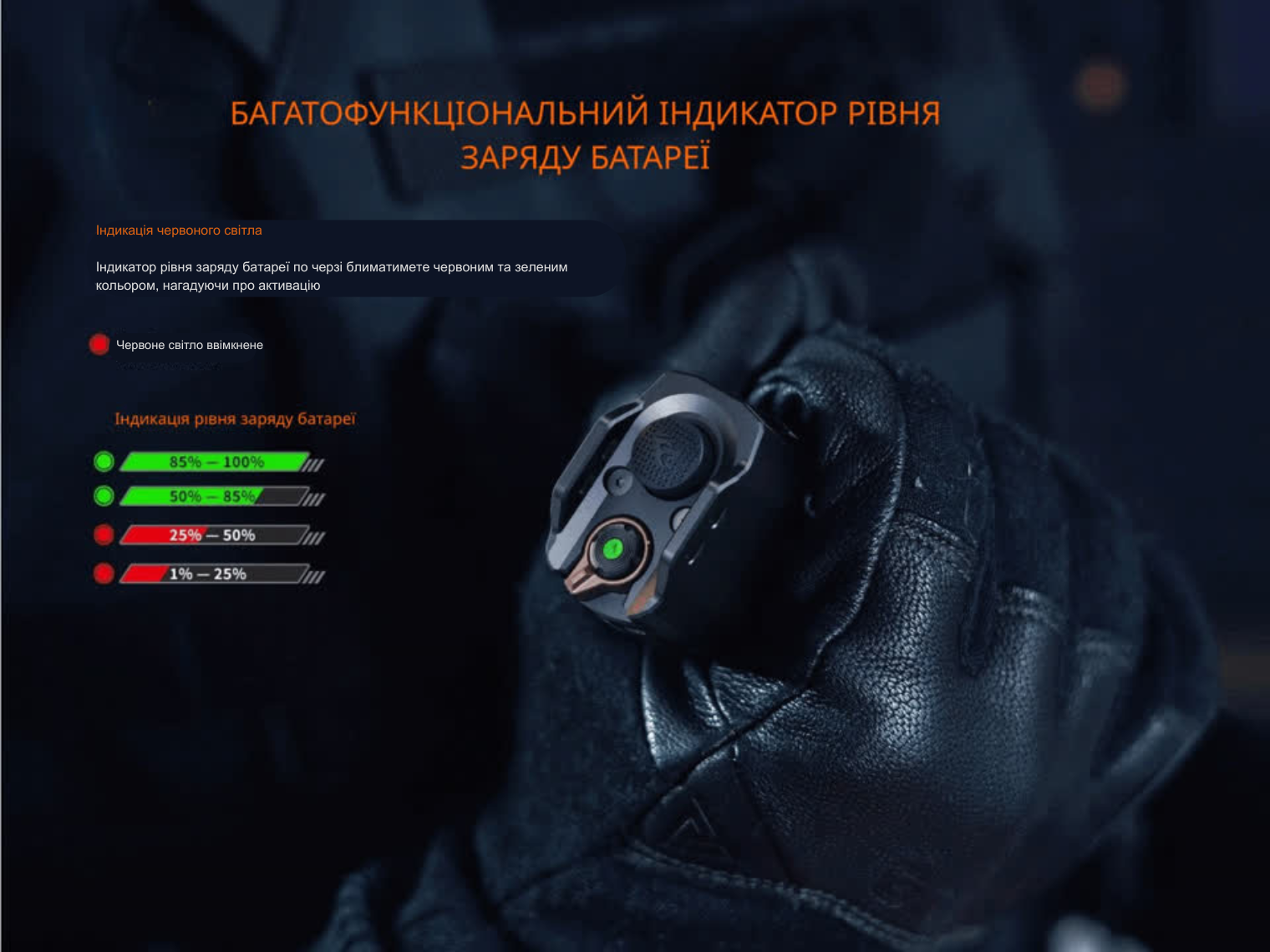 У ліхтарі передбачено запам'ятовування останнього режиму та електронне блокування від випадкового ввімкнення під час транспортування.