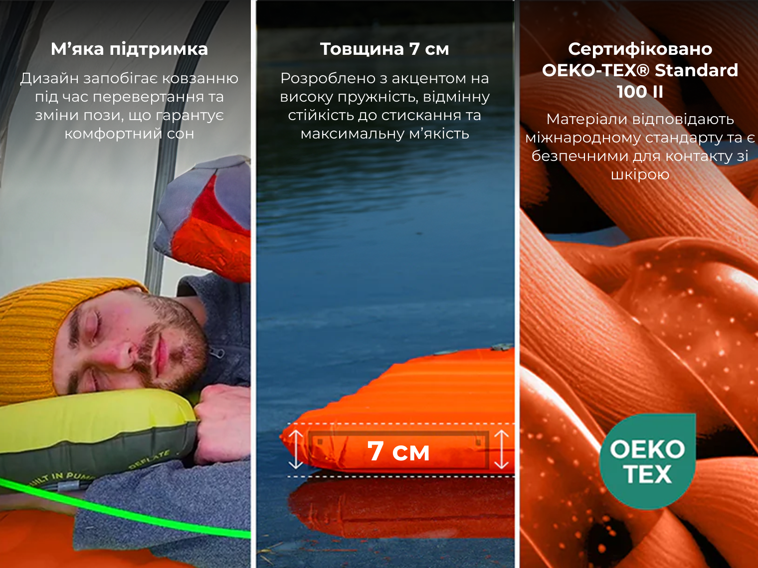Завдяки поєднанню зносостійкого нейлону 20D, теплої металізованої фольги та синтетичного утеплювача, матрас забезпечує ідеальний баланс між мінімальною вагою спорядження та фізіологічно правильною підтримкою тіла під час сну.