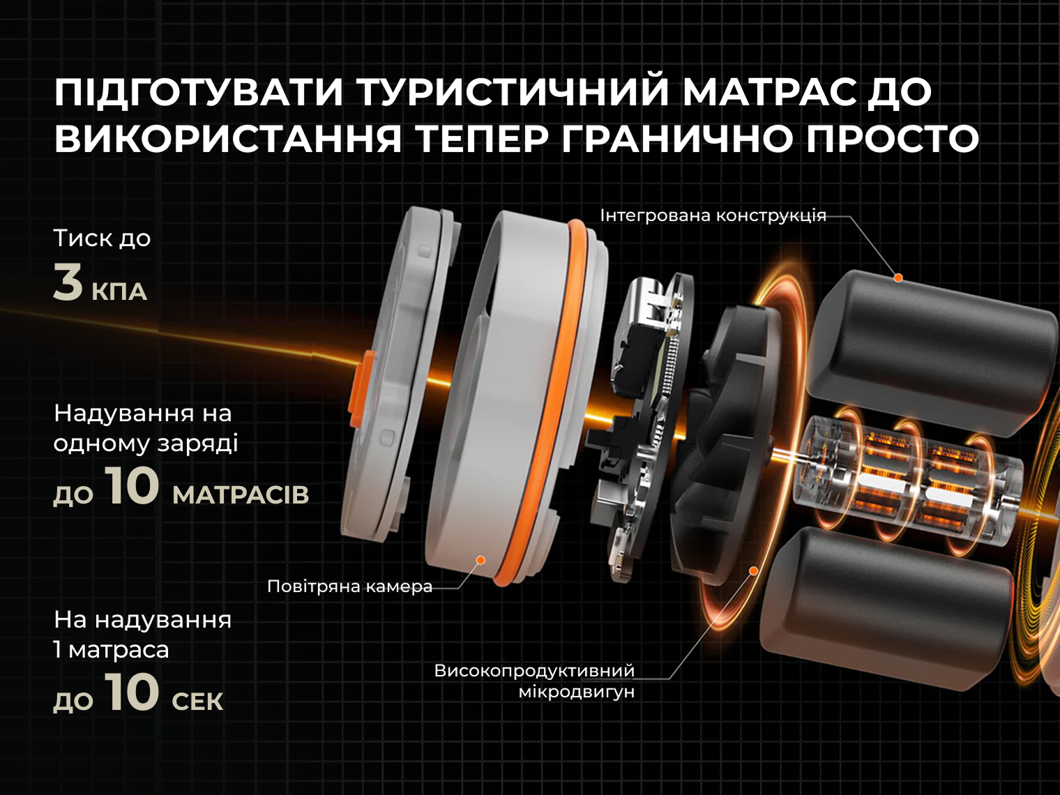 - Система подвійного клапана. Основний клапан призначений для швидкої автоматичної роботи, а додатковий — для точного налаштування м'якості матраса під вашу вагу.