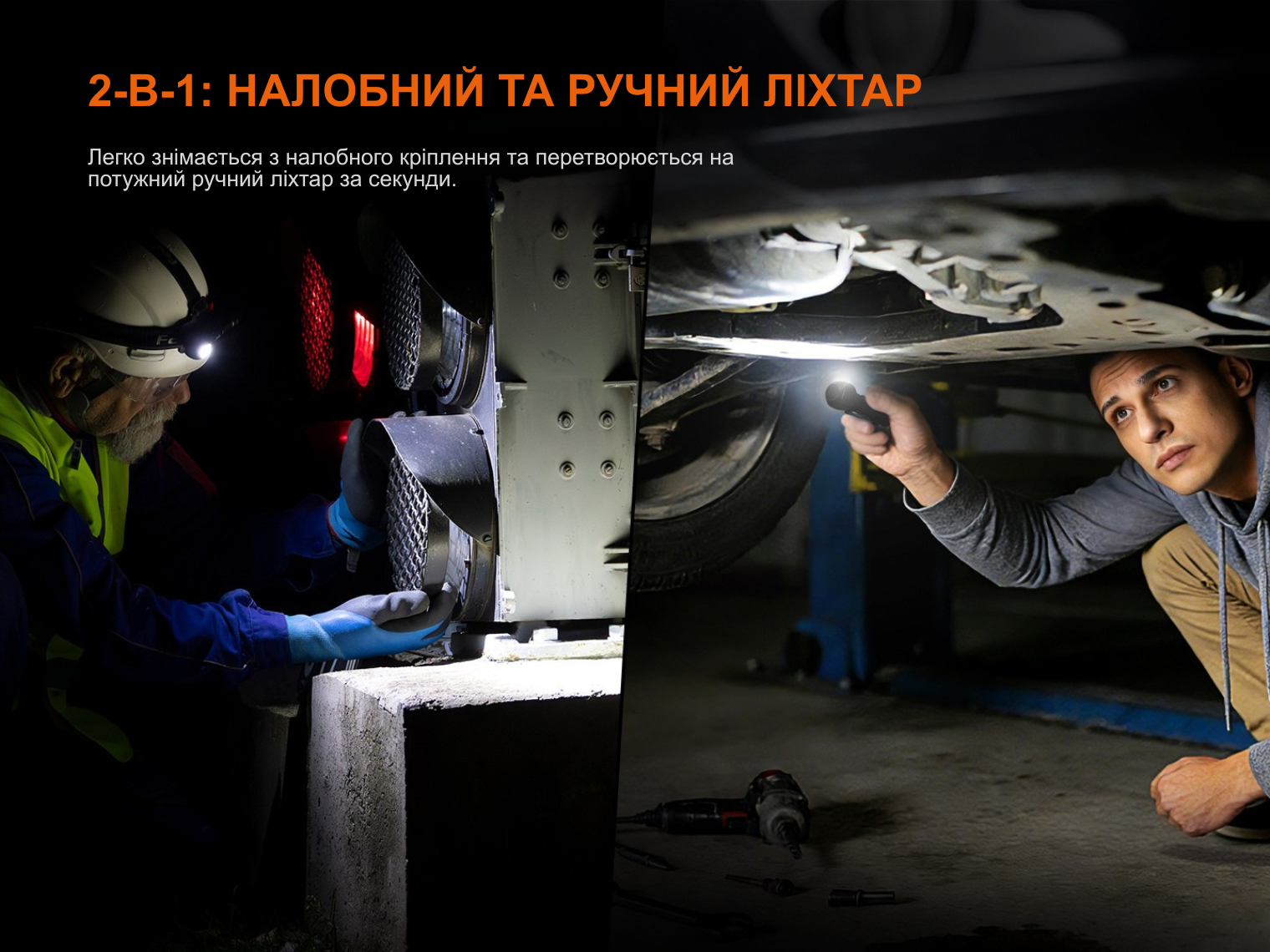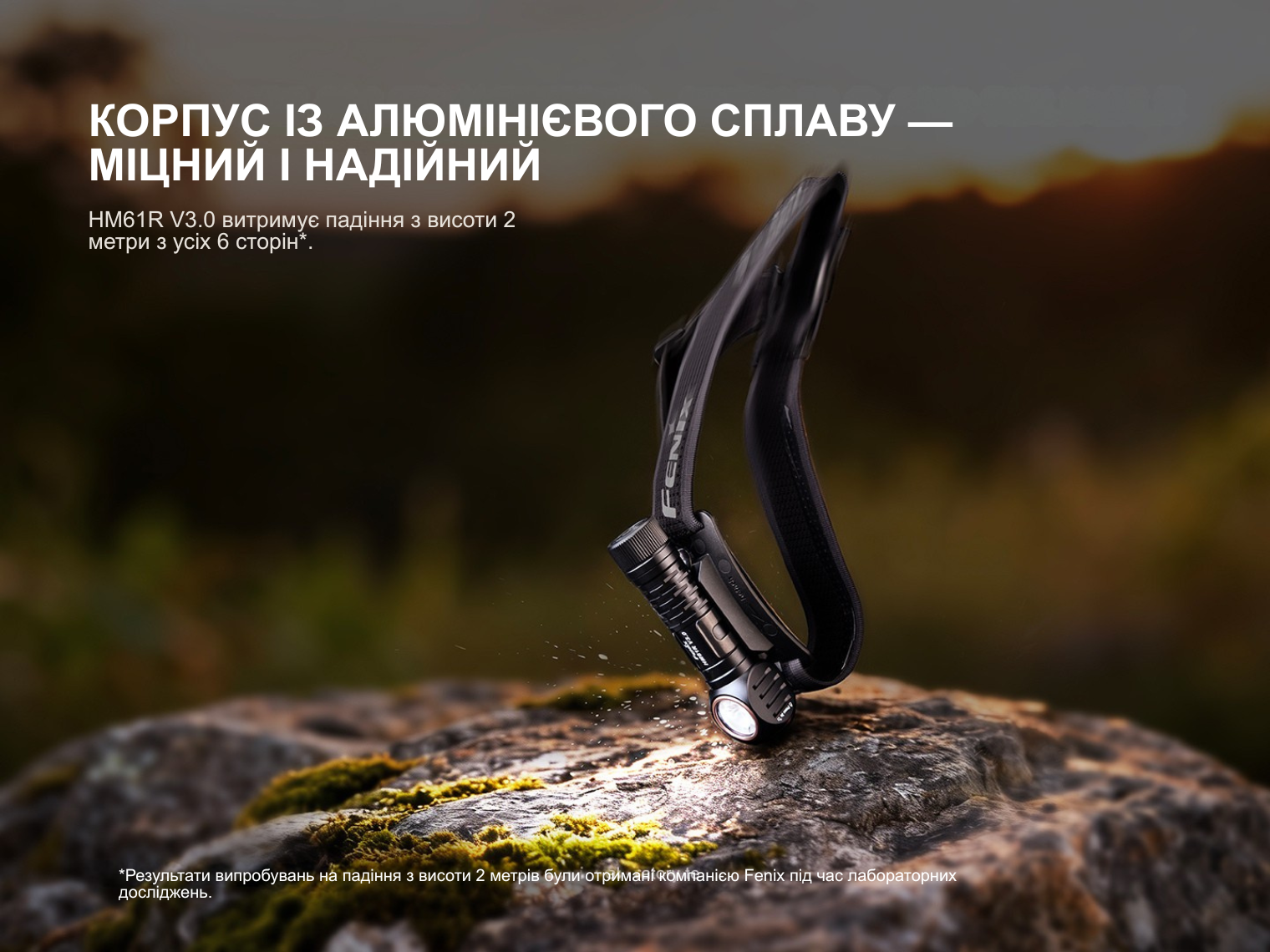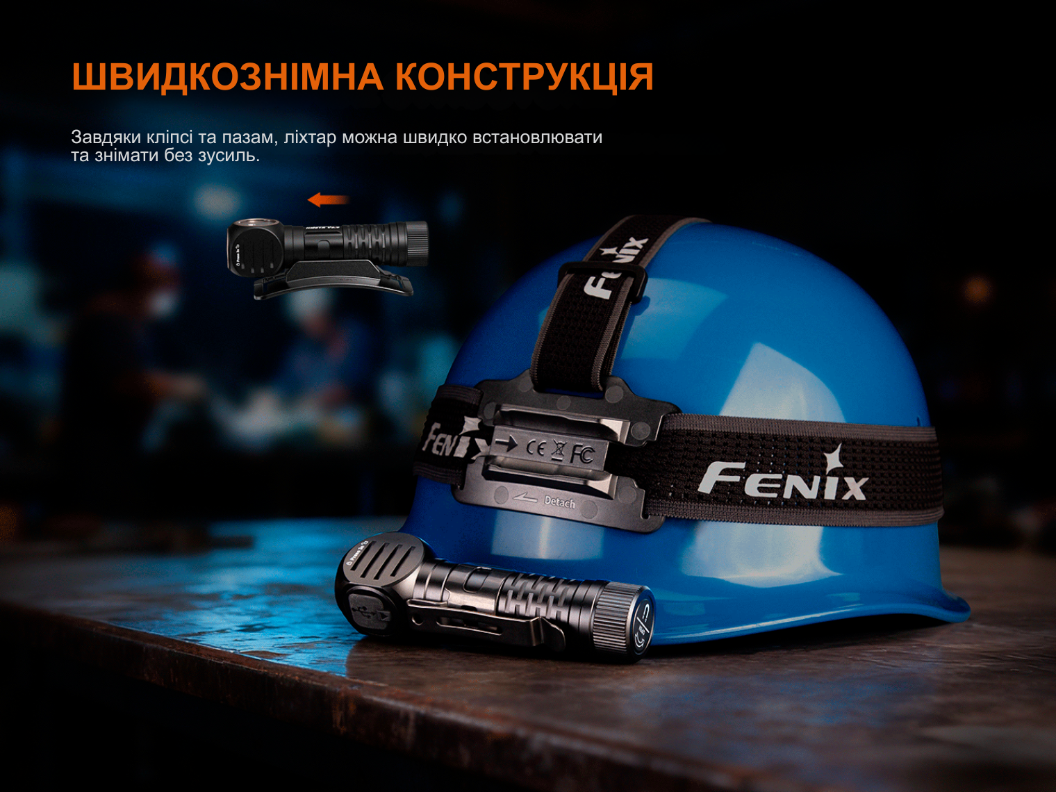 Fenix HM61R V3.0 — це універсальний освітлювальний пристрій, який завдяки знімному кріпленню та сталевій кліпсі трансформується з налобного ліхтаря в ручний або нагрудний.