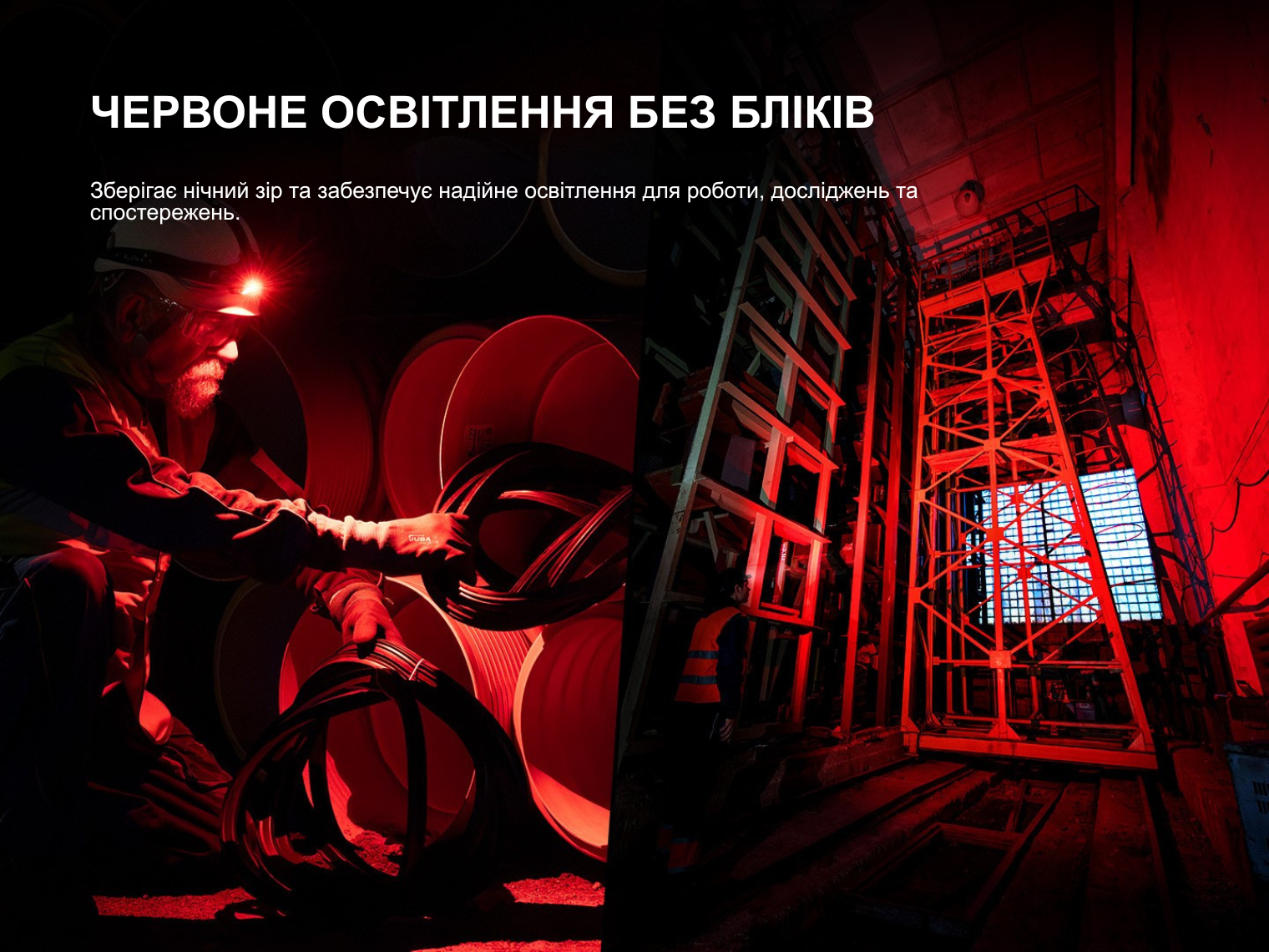 Ліхтар миттєво знімається з наголовного кріплення завдяки системі швидкої фіксації, а світловідбивальні елементи на стрічці роблять вас помітним у темряві.
