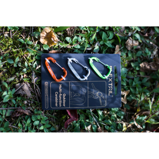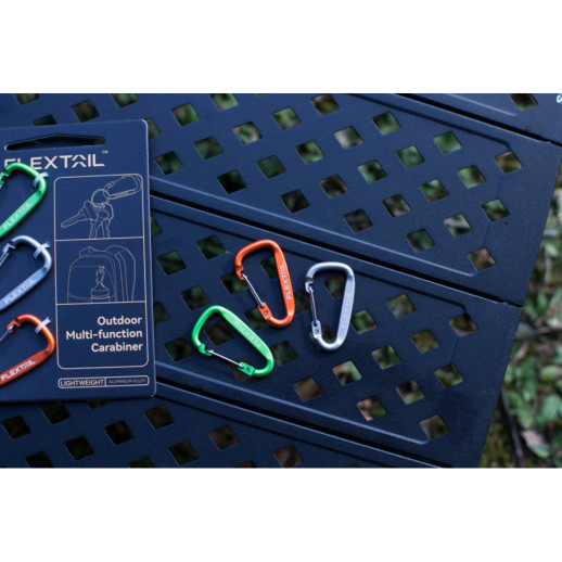 Опис набору алюмінієвих карабінів Flextail, 3 шт (сірий, помаранчевий, зелений):