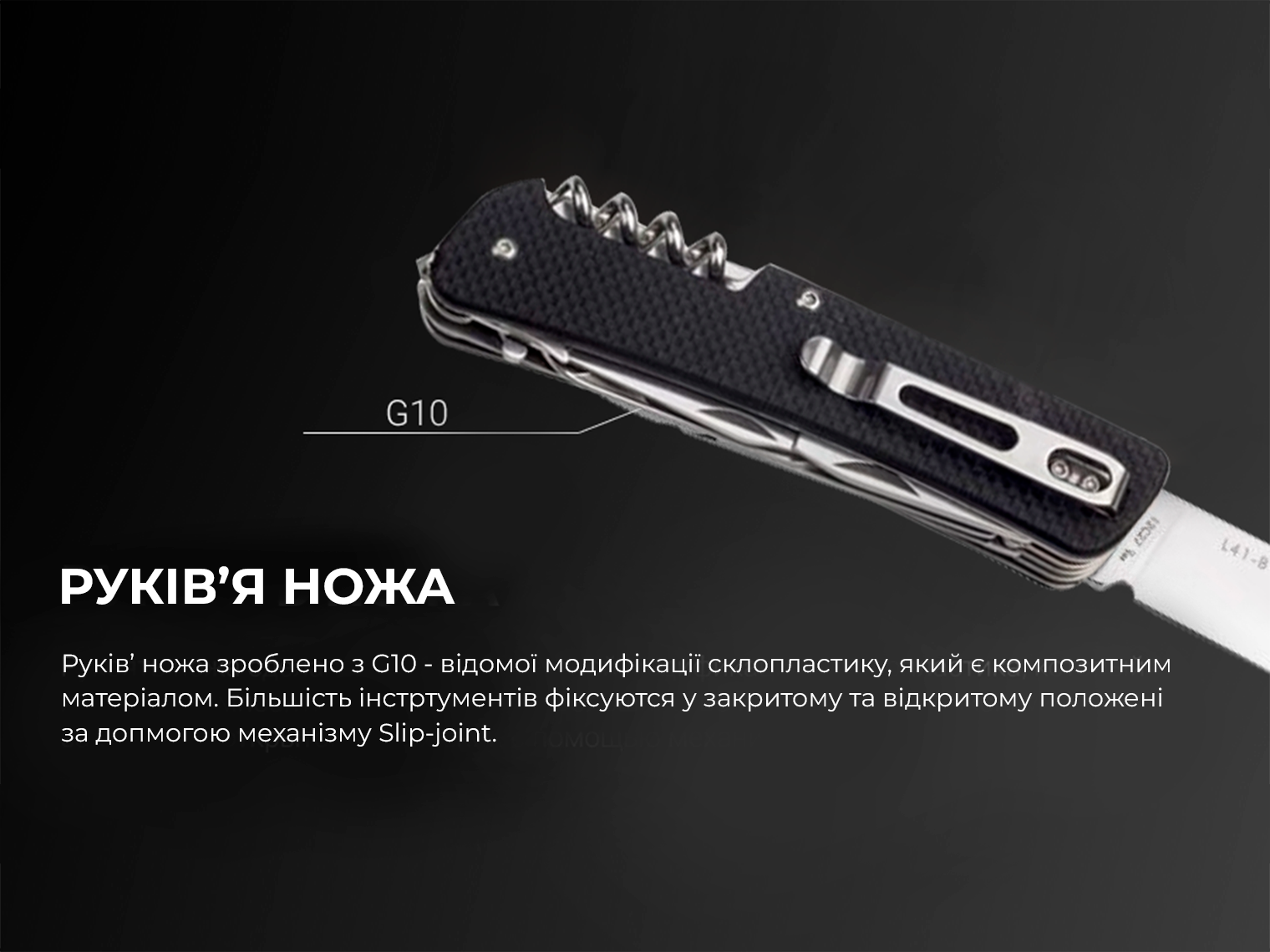 - ніж утримується відкритим за допомогою замку slip-joint;