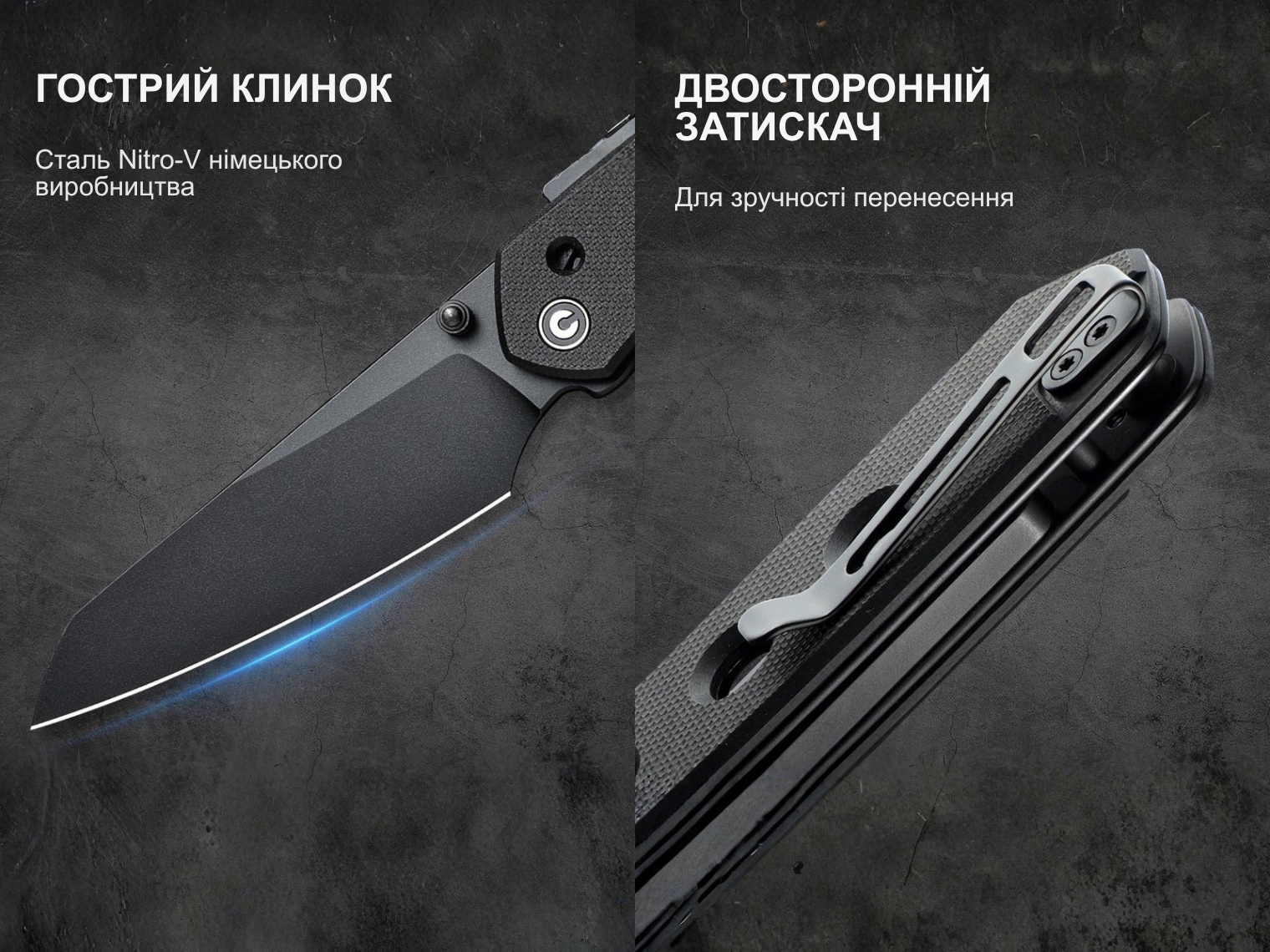 - складаний EDC-ніж Civivi з двопозиційною кліпсою з нержавіючої сталі;