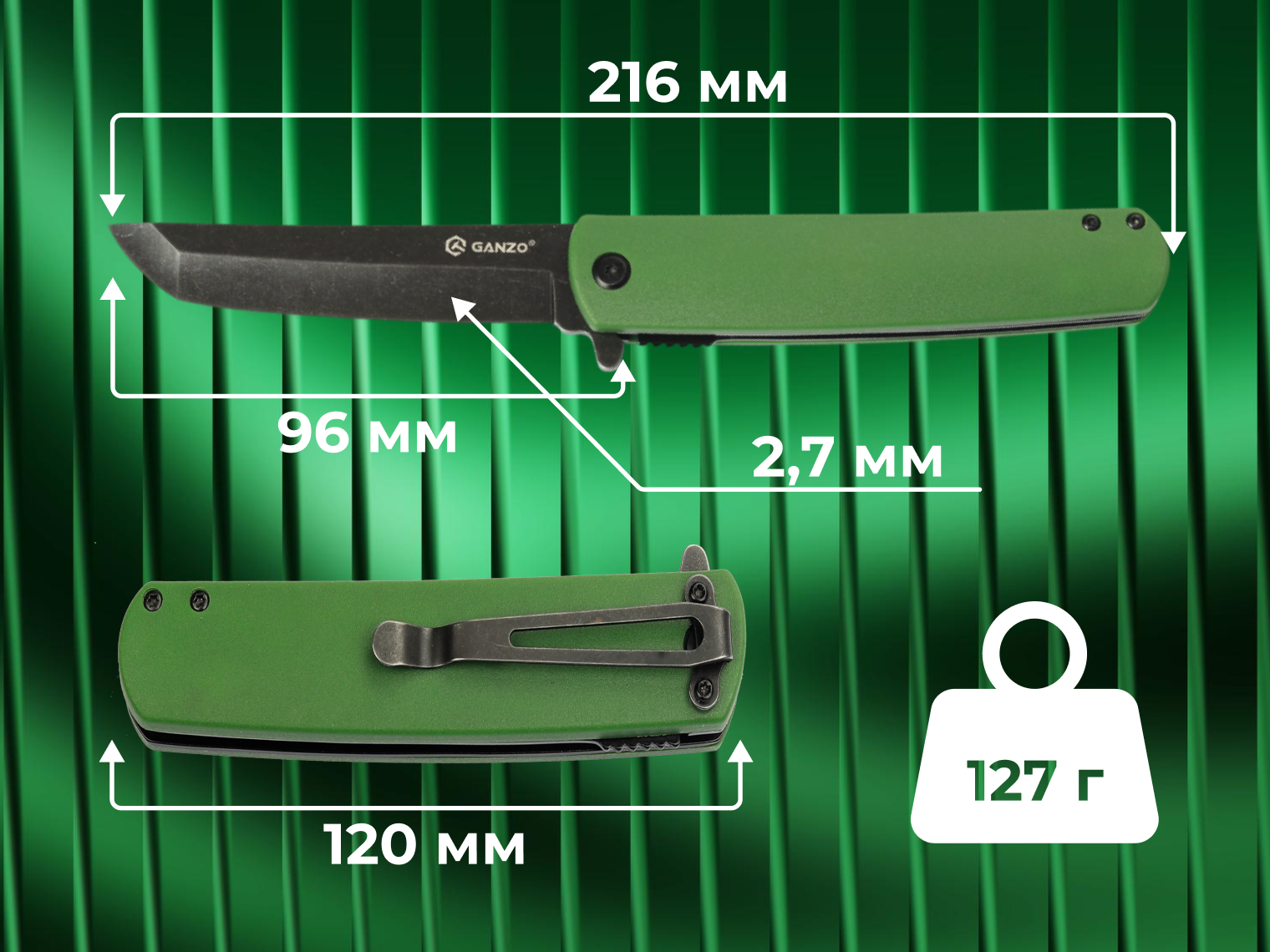 Опис складаного ножа Ganzo G626-GR зеленого: