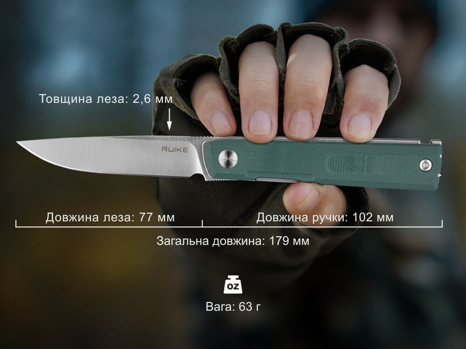 У складаному ножі Ruike D712-G поєднуються строгість форми та утилітарна практичність. Лаконічний дизайн заснований на чітких лініях та точних пропорціях: тут немає нічого зайвого — виключно функціональність та впевненість у кожному русі.