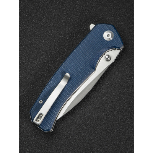 Ніж Sencut Skarnax оснащений сталевою кліпсою, адаптованою під різні стилі носіння і використання правшами та шульгами. Затискач є двопозиційним з можливістю кріплення з будь-якого боку руківʼя.
