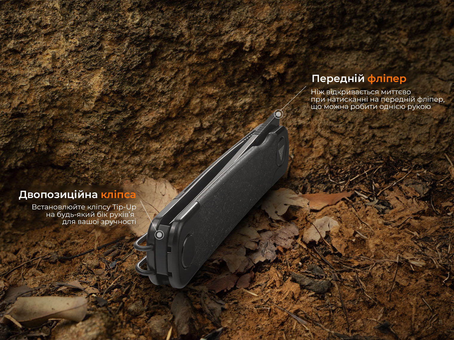 У хвостовій частині руківʼя встановлено фірмову кліпсу Tip-Up, що дозволяє носити ніж глибоко в кишені. Кліпсу можна переставляти на будь-який бік руківʼя без використання додаткових інструментів.