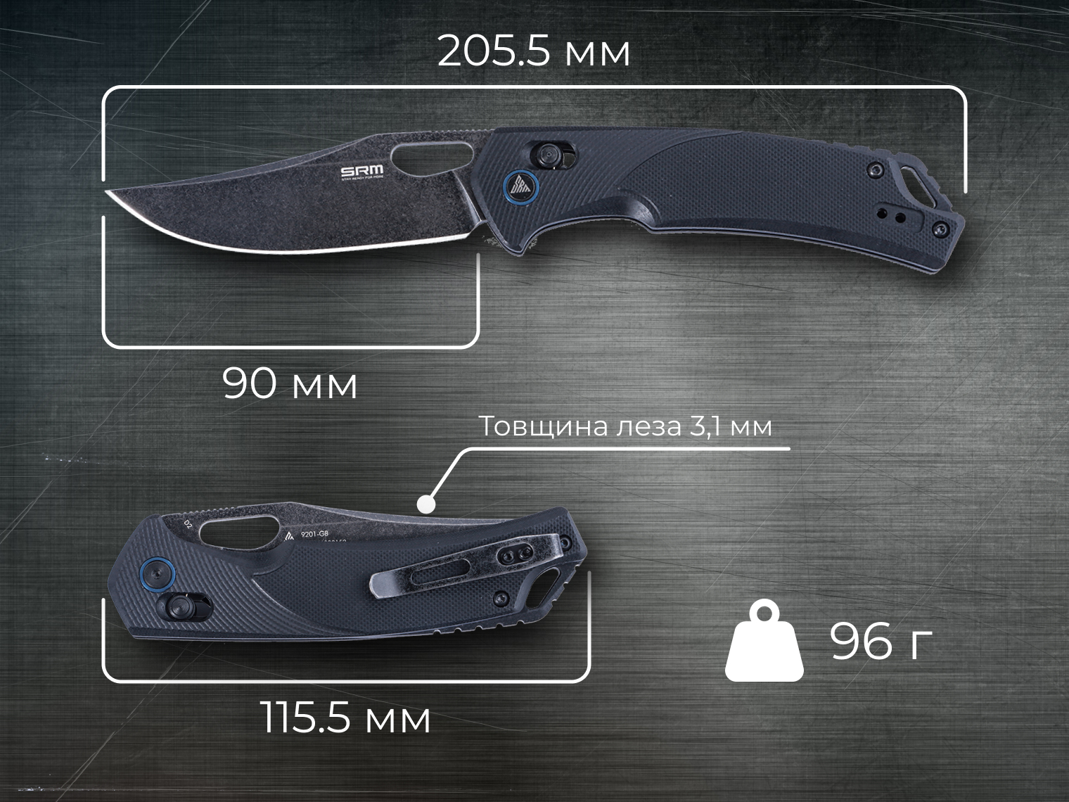 Опис складаного ножа SRM Retriever 9201-GB, чорного: