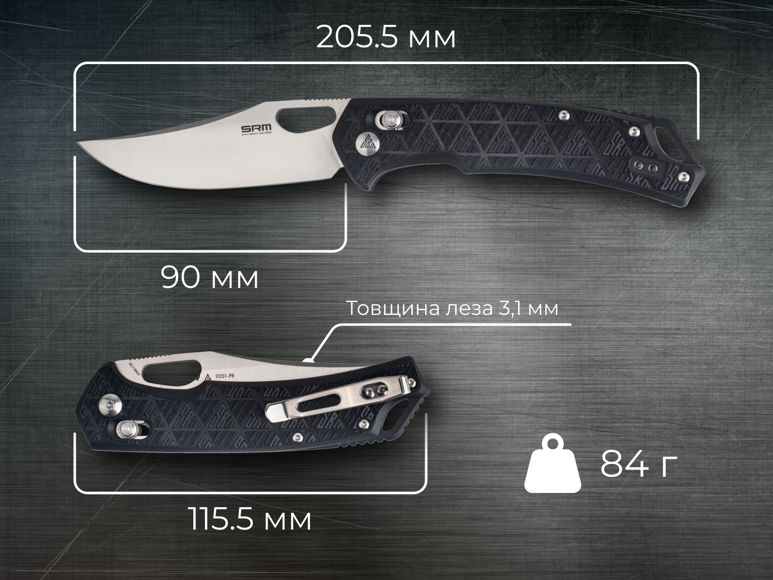 Опис складаного ножа SRM Retriever 9201-PB, чорного: