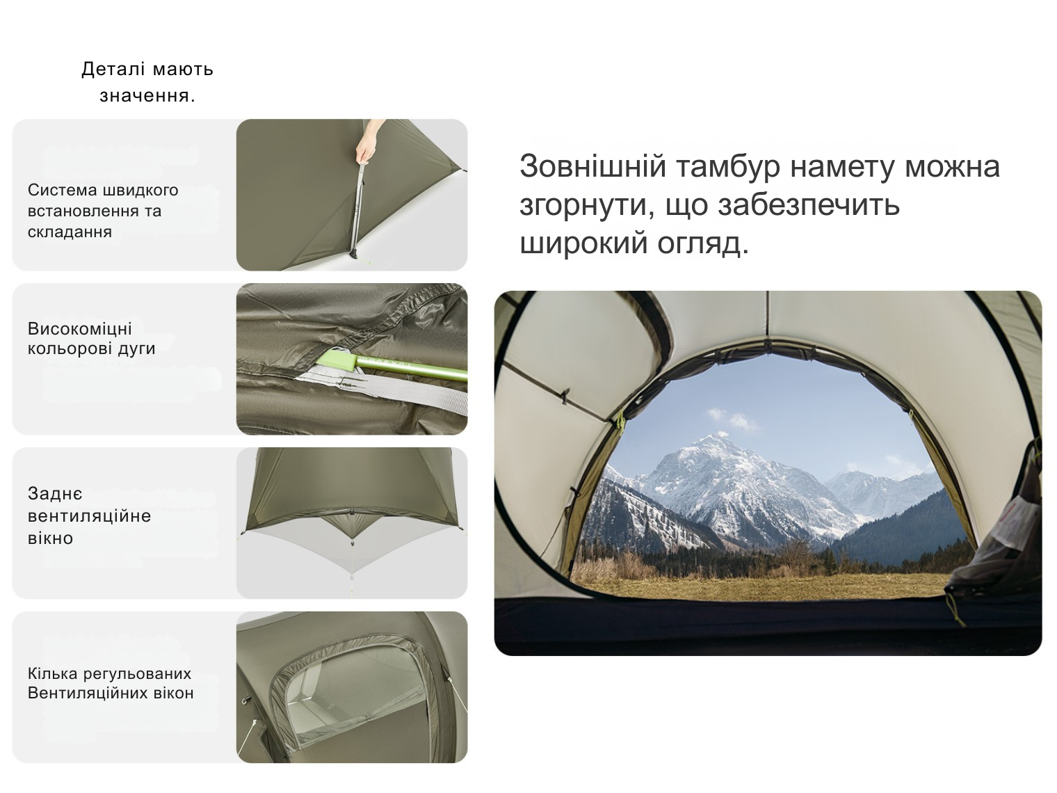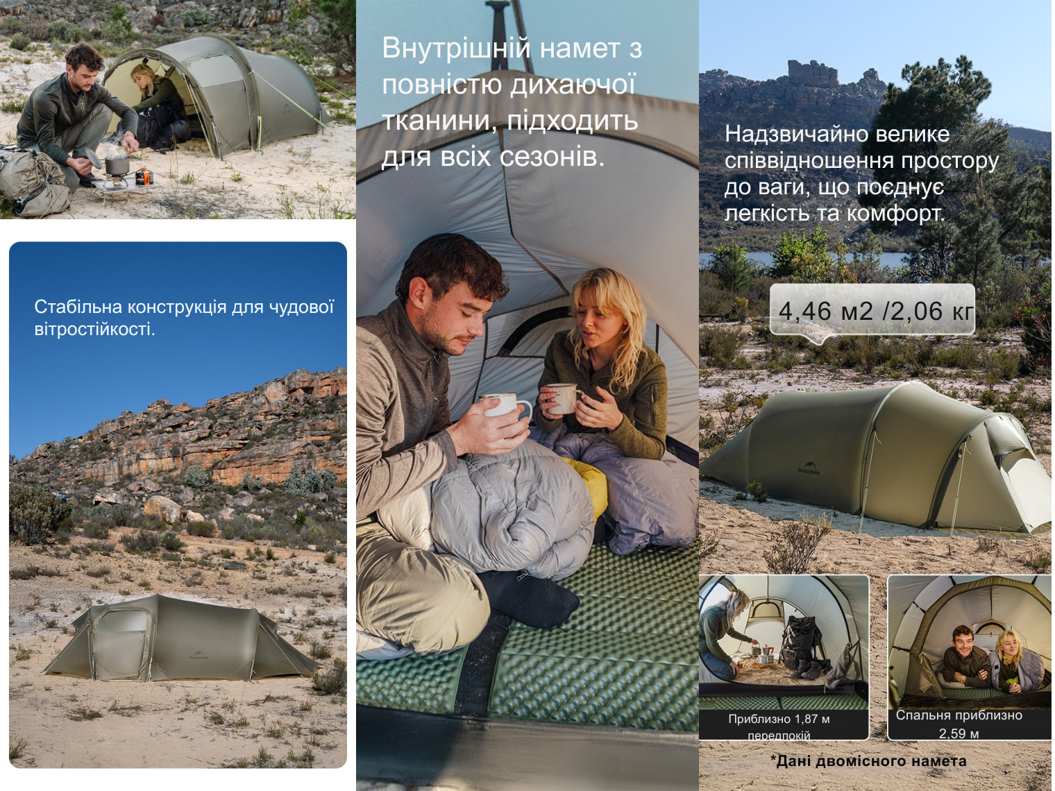 - намет Naturehike Opalus з двошаровою конструкцією;