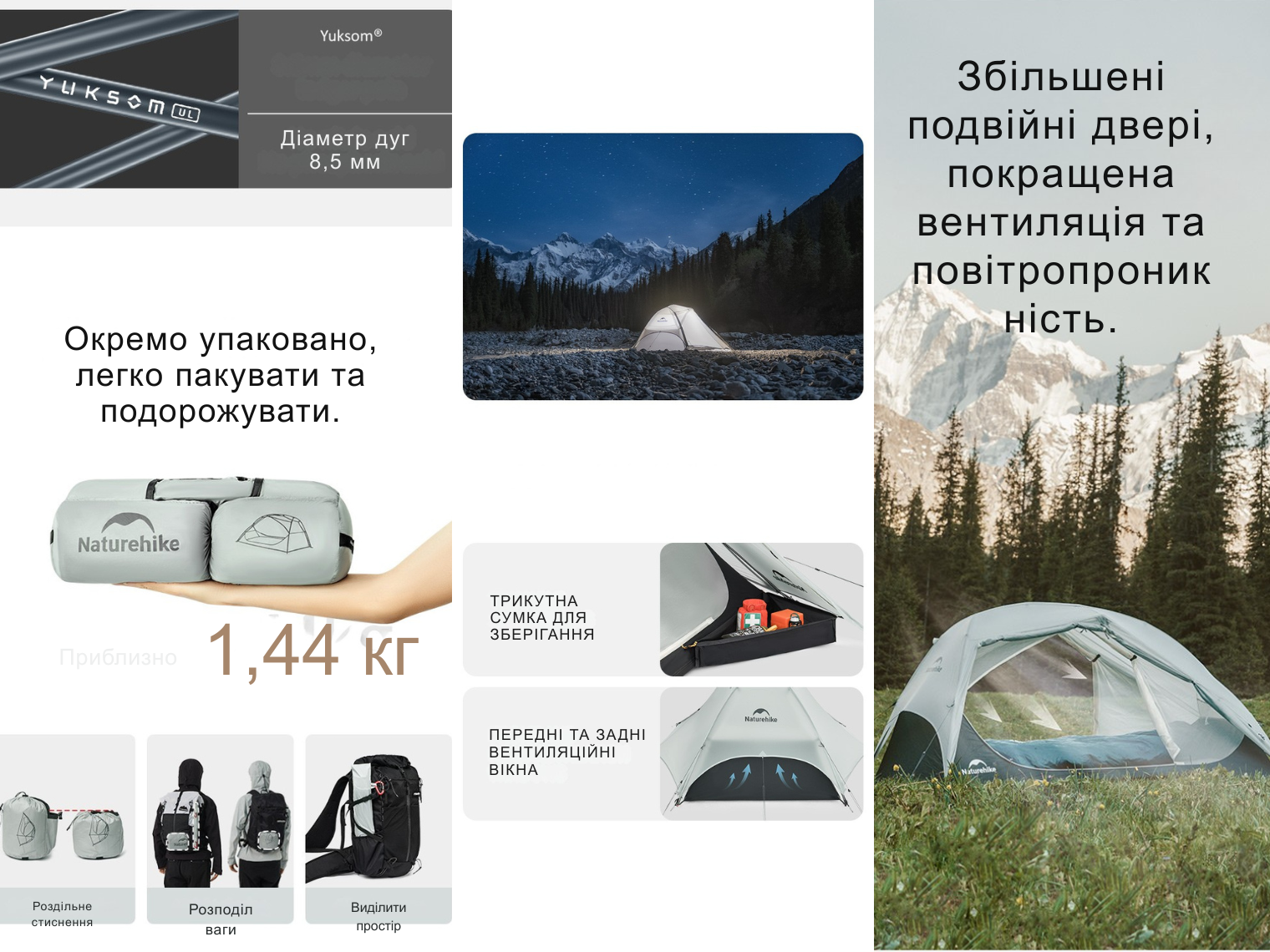 Опис двомісного ультралегкого намету Naturehike Star River UL CNK2450WS022, сірого: