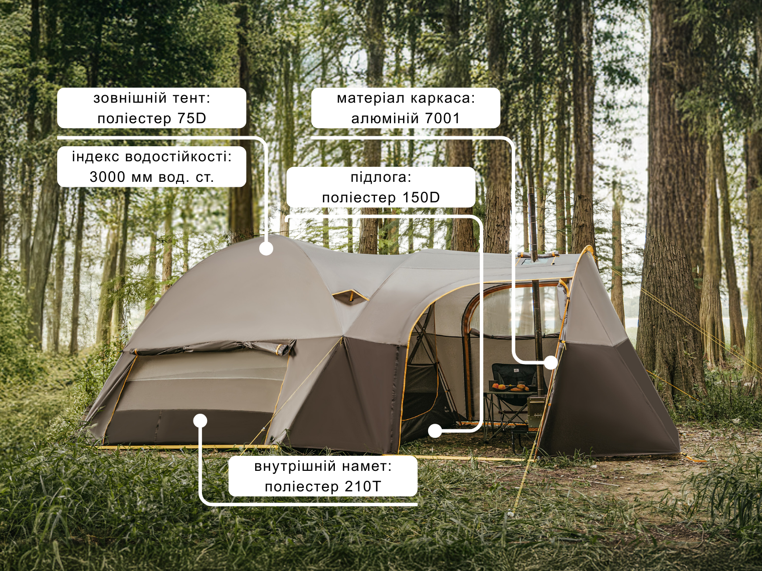 Опис шестимісного намету Naturehike, KOTA 6, CNK2450WS031, 75D, світло-коричневого: