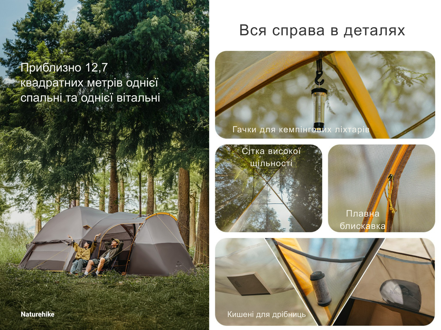 - двошаровий намет Naturehike KOTA 6 для кемпінгу;