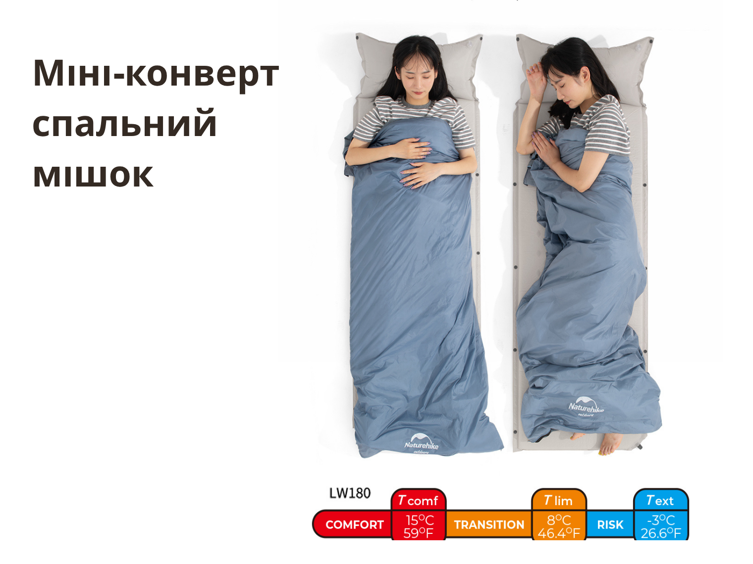 Опис спального мішка Naturehike Lightweight Summer LW180 NH21MSD09, (15°C), p-P XL, зелений: