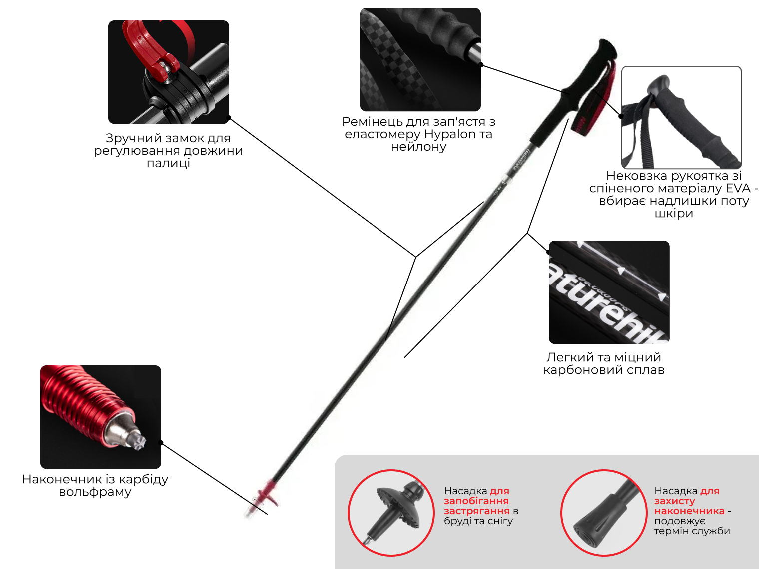 - комплект включає телескопічна палиця, 1 пара насадок різного типу;