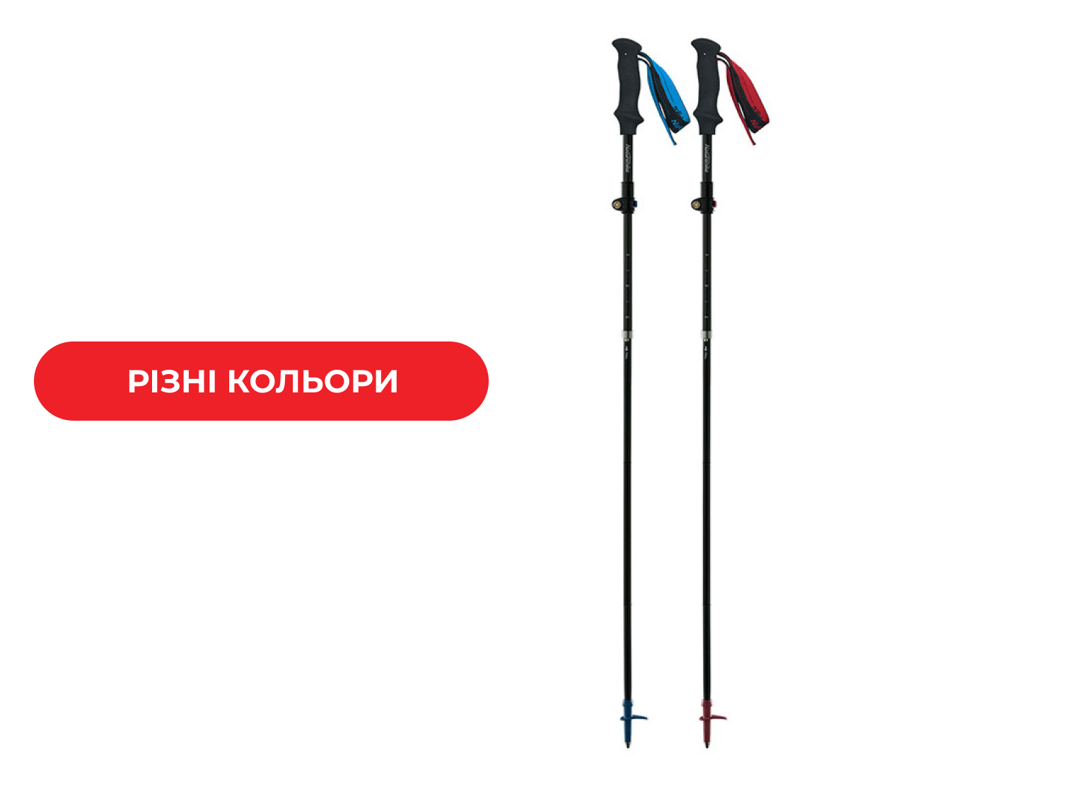 Внизу палиць інтегровані міцні наконечники з вольфраму. Вони відповідають за надійне зчеплення з кам'янистими та сніговими поверхнями. До комплекту постачання входять захисні ковпачки, які вберігають метал від впливу вологи.