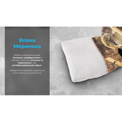 - внутрішня частина носка: 75% поліестер, 22% поліамід, 3% еластан.
